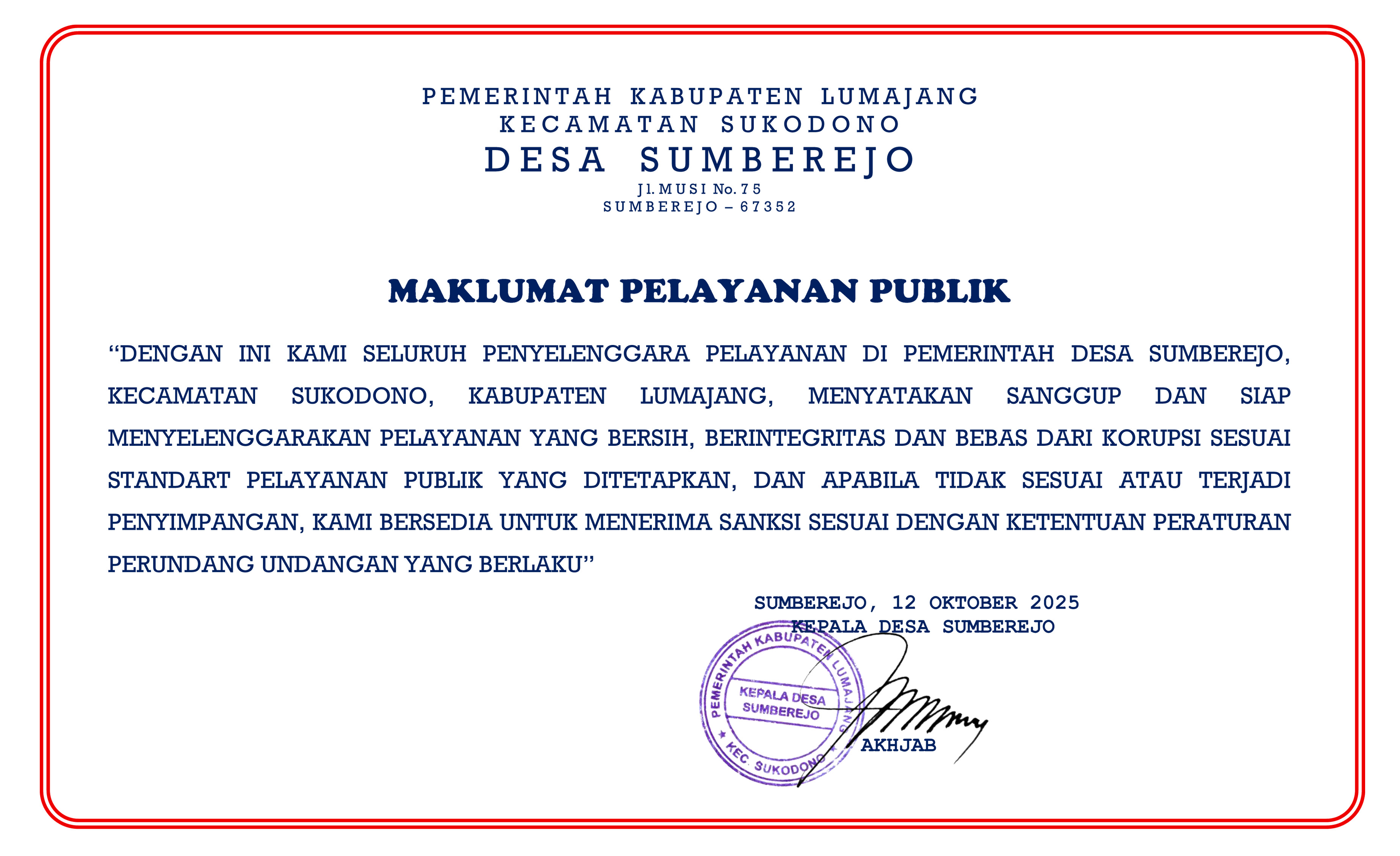 SELAMAT DATANG DI WEBSITE DESA SUMBEREJO